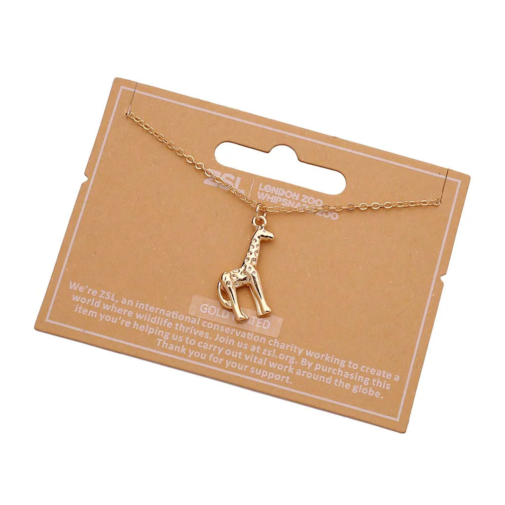 This gold plated giraffe necklace has a delicate style, featuring a beautiful small pendant of the charming creature itself.